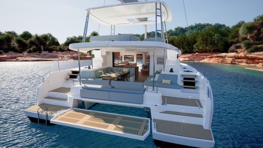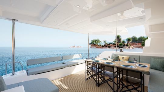 Il Lagoon 47 si basa su tre aree esterne distinte che si completano a vicenda. Il pozzetto di poppa di 16 m2 rimane il centro delle operazioni, con spazio per un equipaggio familiare o un gruppo di charter. L'accesso alle gonne facilita gli spostamenti all'ancora.