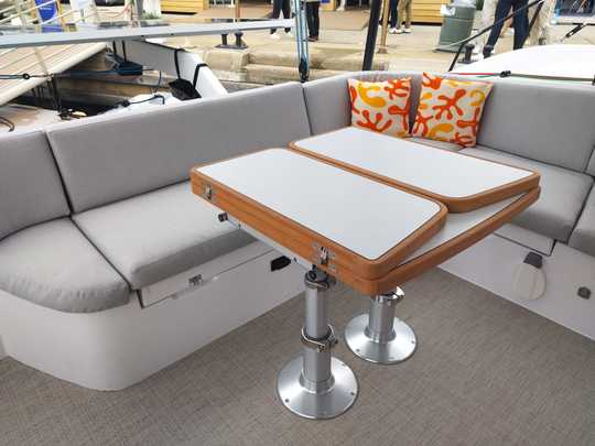 Il volante ha tre posizioni: pozzetto riparato, posizione verticale centrale e posizione esterna. In questo modo è possibile adattare il timone alle condizioni meteorologiche e al livello di impegno che si desidera ottenere. Quando si naviga al largo, il timone in posizione riparata riduce l'affaticamento.